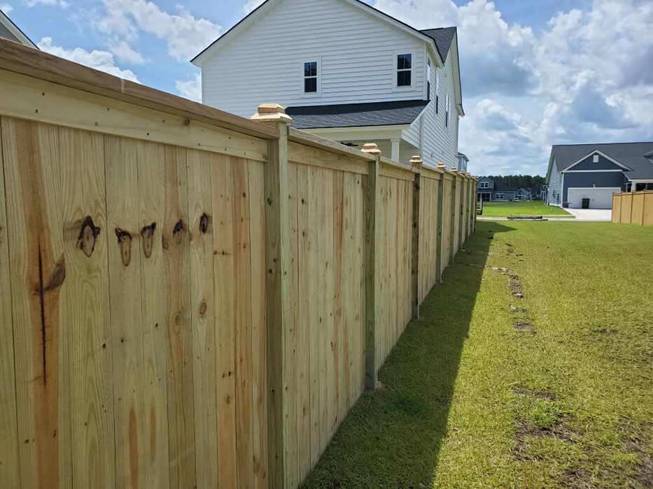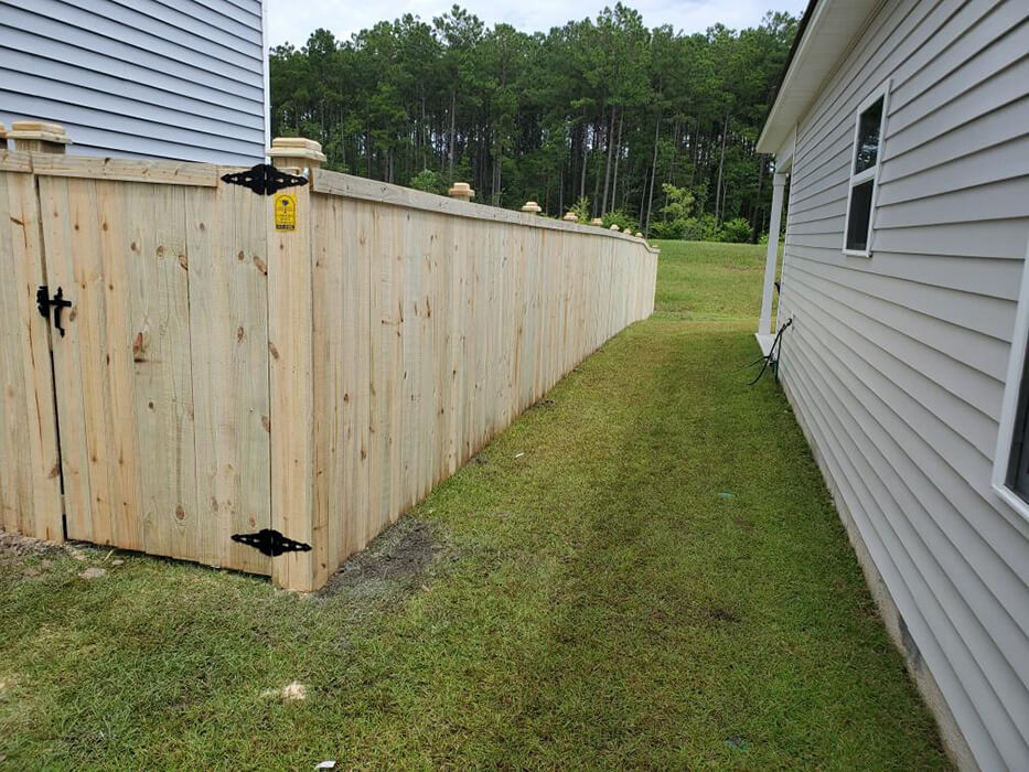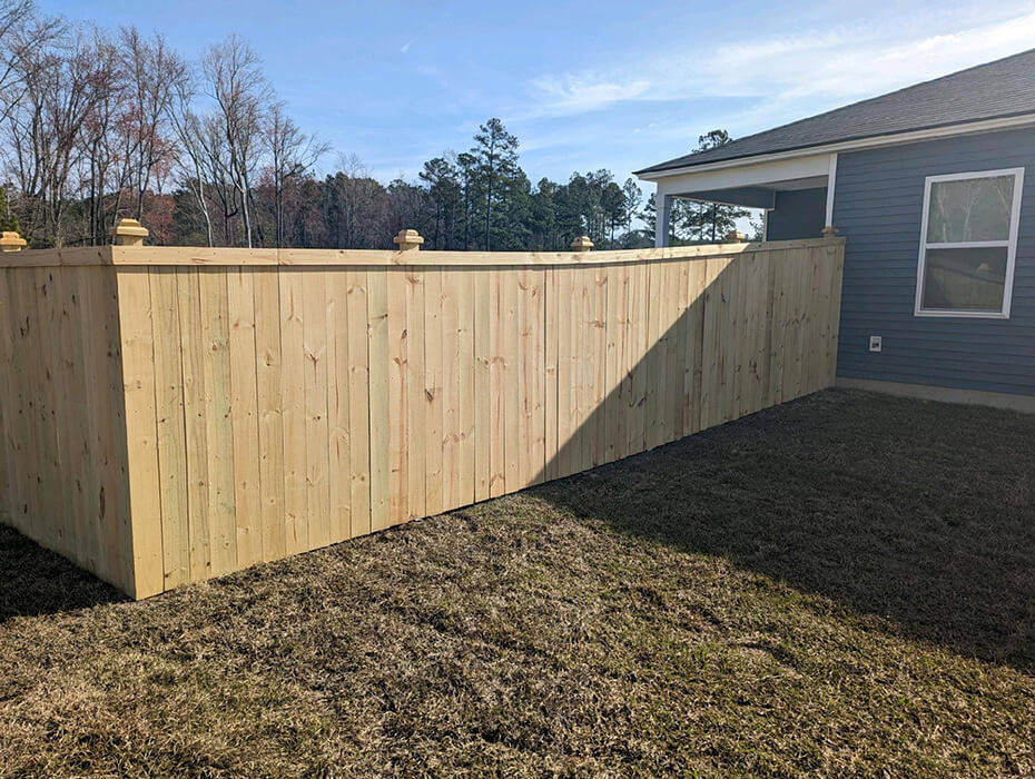 Wood Privacy Fences are common residential choices for fencing. Carolina Fence Company offers many styles of wood fences and builds all fences on-sight. All wood fences automatically come with our three-year installation warranty.